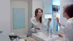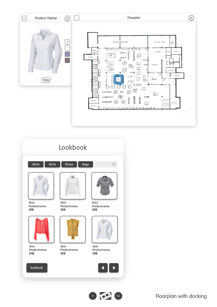 Augmented Shopping refers to an enhanced in-store experience, by means of interactive digital platforms, accessed via touchscreen tables and panels, tablets, smartphones or other digital surfaces, and incorporating a set of “shopping” functionalities. Use Beacon technology to allow people to walk up to an interactive digital surface and get personalized info based on the feedback from their mobile phones.